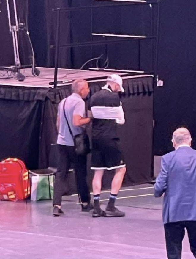 当时阿拉基在突破的时候,面对的正好就是许钟豪,许钟豪看着他朝自己冲过来,直接狠狠的上去,撞到阿拉基的身上,把他撞飞出去了。这个动作其实许钟豪还真的没有做出他像CBA当中那些那么凶狠的动作,反而就是一个正常的对抗,结果这个阿拉基被狠狠撞飞弹出去了,居然现场重伤,缠着右胳膊一瘸一拐退出了场地。