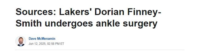 北京时间6月13日,湖人前锋芬尼-史密斯已经接受左踝手术,预计能在2025-26赛季NBA训练营开始前恢复并参与训练。此次手术旨在解决他过去几个赛季一直存在的脚踝旧伤。通过清理病灶,32岁的芬尼-史密斯有望在未来比赛中摆脱疼痛困扰。