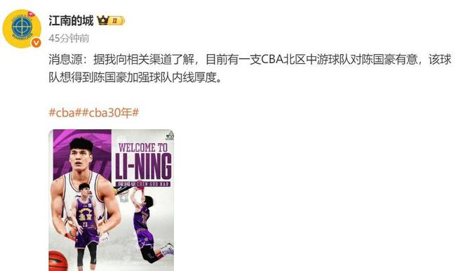 据媒体人江南的城的消息,目前有一支CBA北区中游球队对陈国豪感兴趣,该队是想加强内线深度。