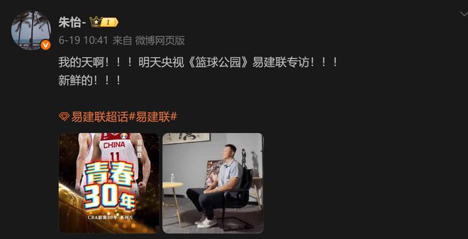 前天,中央电视台放出了节目预告,透露将在本周五的《篮球公园》栏目播放CBA30周年的系列纪录片,其中会包含易建联的专访。