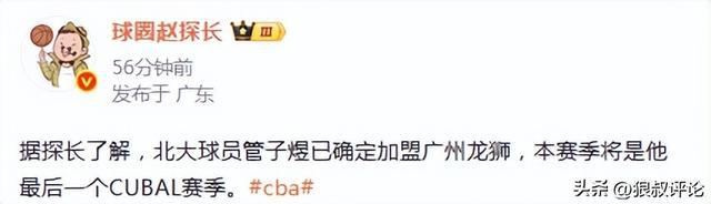 北京时间5月28日,根据媒体人赵探长报道,北大球员管子煜已确定加盟广州龙狮,本赛季将是他最后一个CUBAL赛季。