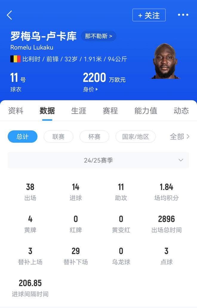 2024/25赛季,卢卡库代表那不勒斯出场38次,打入14球11助攻,帮助那不勒斯夺得意甲冠军。有了德布劳内的加持,大家预测一下卢卡库下赛季的数据会有多大提升?