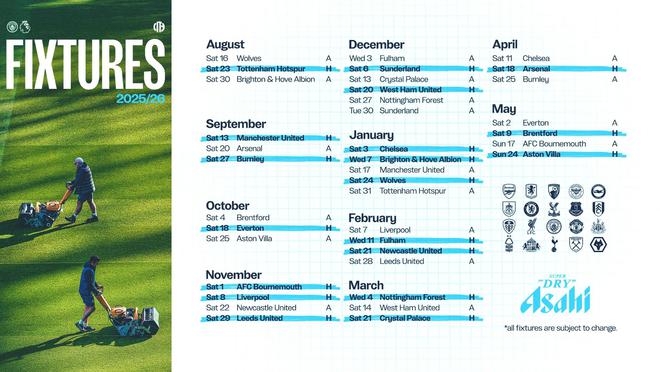 曼城新赛季英超赛程:揭幕战踢狼队,四、五轮连踢曼联&阿森纳