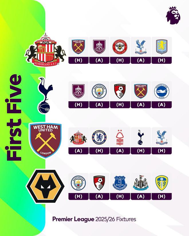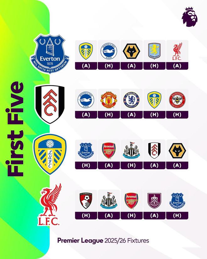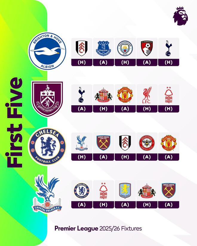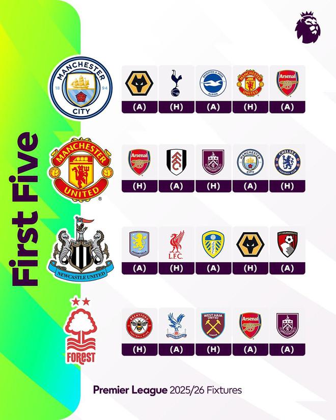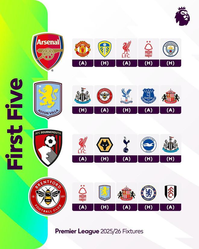 北京时间6月18日,英超官方公布2025-26赛季完整赛程,随后晒出了每支球队新赛季的前五场比赛。阿森纳、曼联等开局接连遭遇强队,维拉、水晶宫等稍显轻松,那么新赛季哪支球队的开局是“地狱”难度,哪支球队又会迎来顺风开局呢?