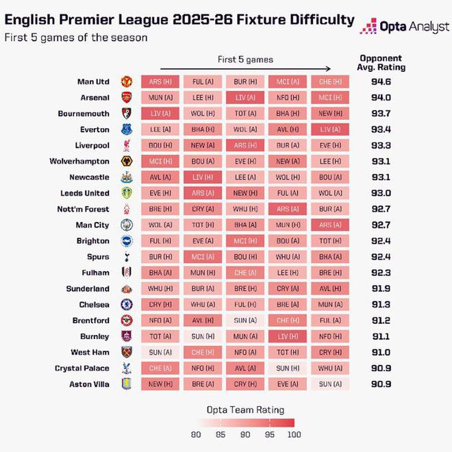 之后两轮,曼联对手没那么强大,分别是富勒姆和升班马伯恩利。但第四轮又要面对劲敌,这次是曼市德比做客伊蒂哈德球场大战曼城。随后,曼联将遭遇另一传统豪门切尔西,前5轮就直面三大豪门,被评定为英超开局赛程最困难的球队,没有之一。