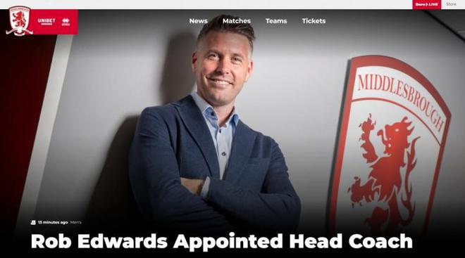 官方:罗布-爱德华兹出任米德尔斯堡主帅,签约三年