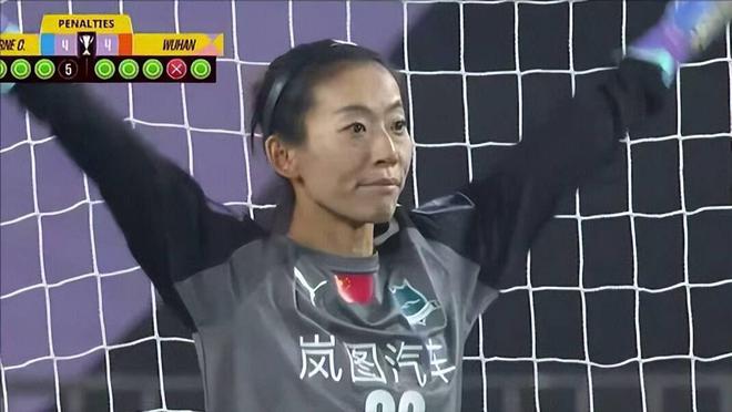 陈晨刚登场不久,就化解了对手一次单刀球。当然,陈晨真正的封神时刻就是点球大战。武汉女足球员重压之下,罚丢一个点球,让俱乐部夺冠前景变得黯淡。武汉女足必须指望陈晨能站出来扑出对手一个点球,才能将球队从输球的边缘拉回来。关键时刻陈晨果然是力挽狂澜,将对手点球扑出。
