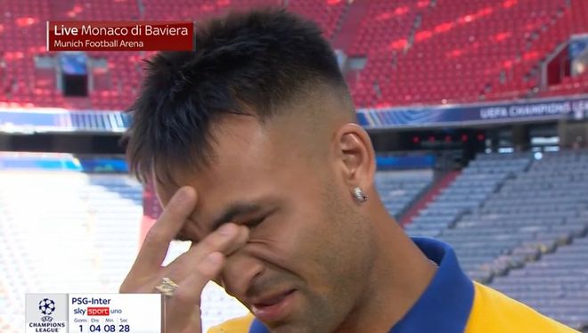 劳塔罗在天空体育的采访中收到了来自妻子、孩子及其他亲友的祝福和鼓励,随后不禁落下泪来。