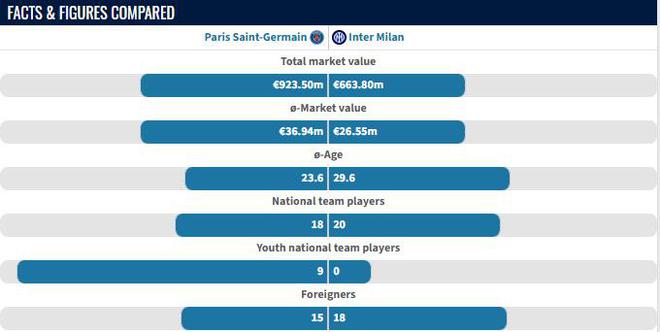 直播吧05月31日讯 明日凌晨,巴黎对阵国米的欧冠决赛即将开打,根据德转统计数据,巴黎俱乐部名单的平均年龄仅为23.6岁,而国米的平均年龄则为29.6岁,相差了近6岁。